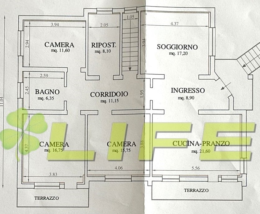 I piani sono comunicanti con scala interna ma hanno altresì un’entrata entrambi indipendente. La soluzione si presta idealmente per due nuclei familiari.